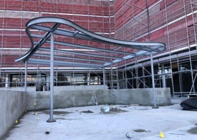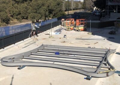 Our team handled every stage of the process — from workshop fabrication through to onsite installation — ensuring precision and strength in every connection. The curved steel beams and columns were rolled, welded, and assembled to meet strict design tolerances, then coated for long-term protection against Canberra’s varying weather conditions.